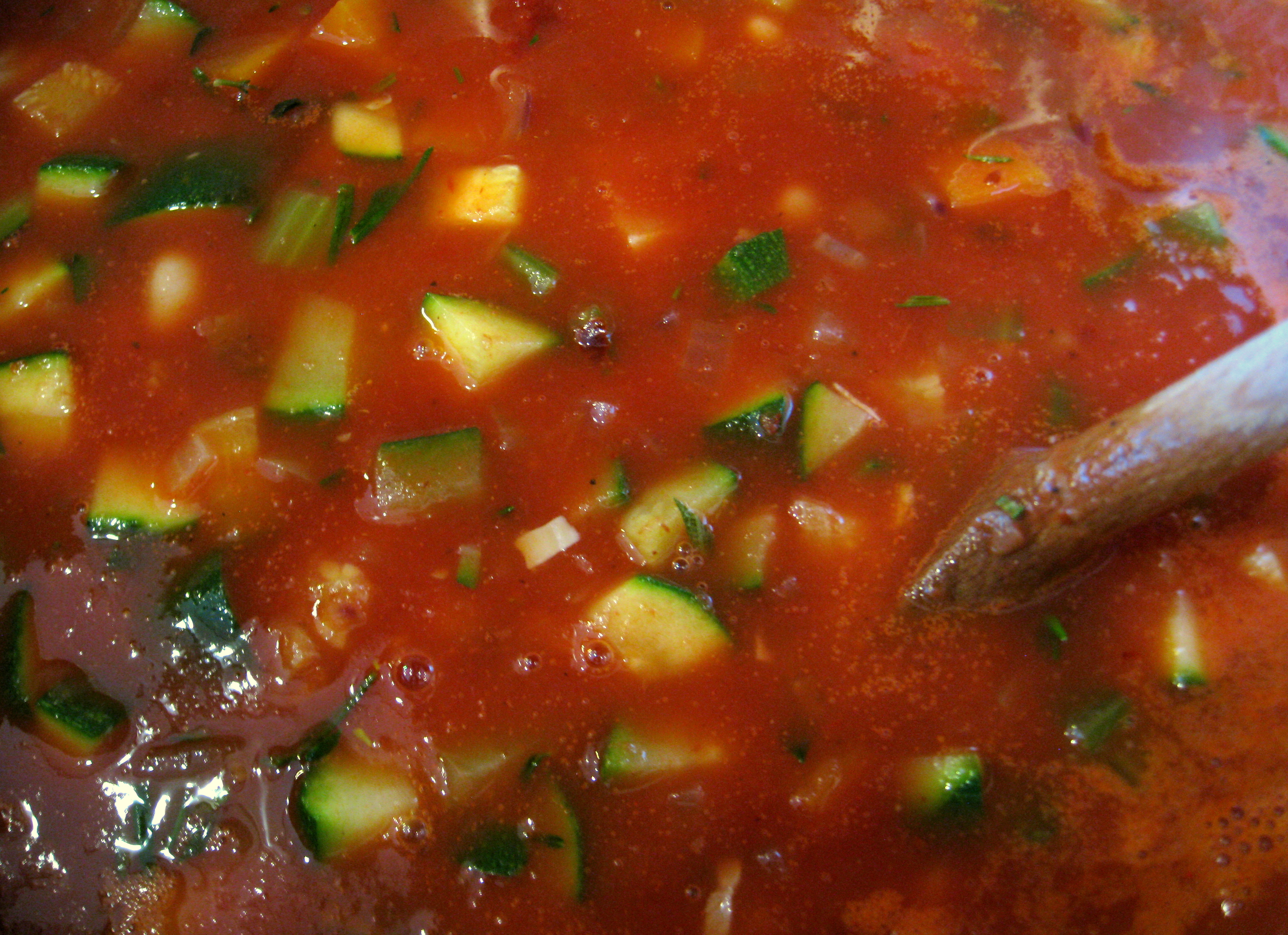 Turn off the soup and allow to cool. Then either mash or puree, in a food processor, 3 ladles worth of soup; return the puree to the rest of the soup and stir to combine.